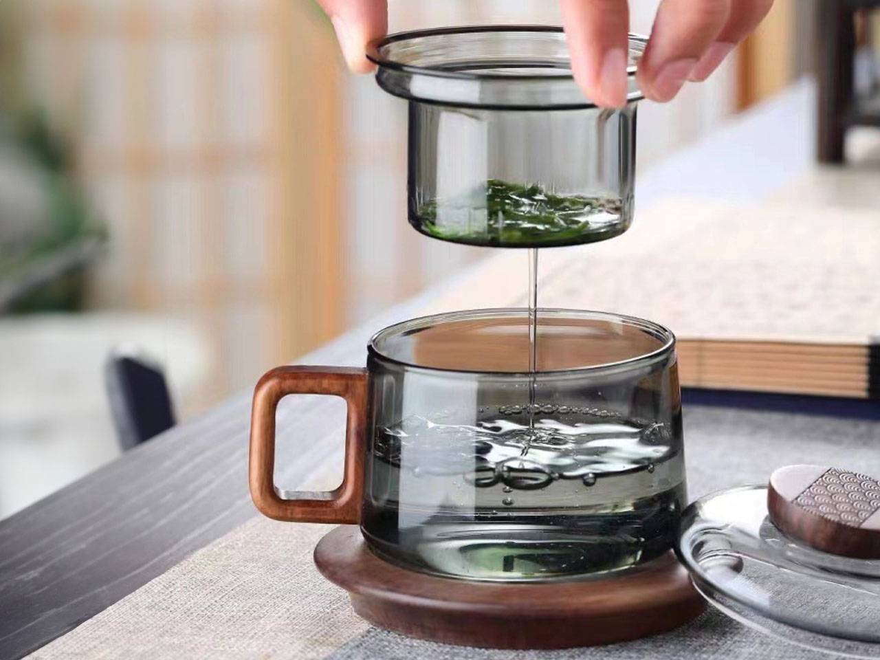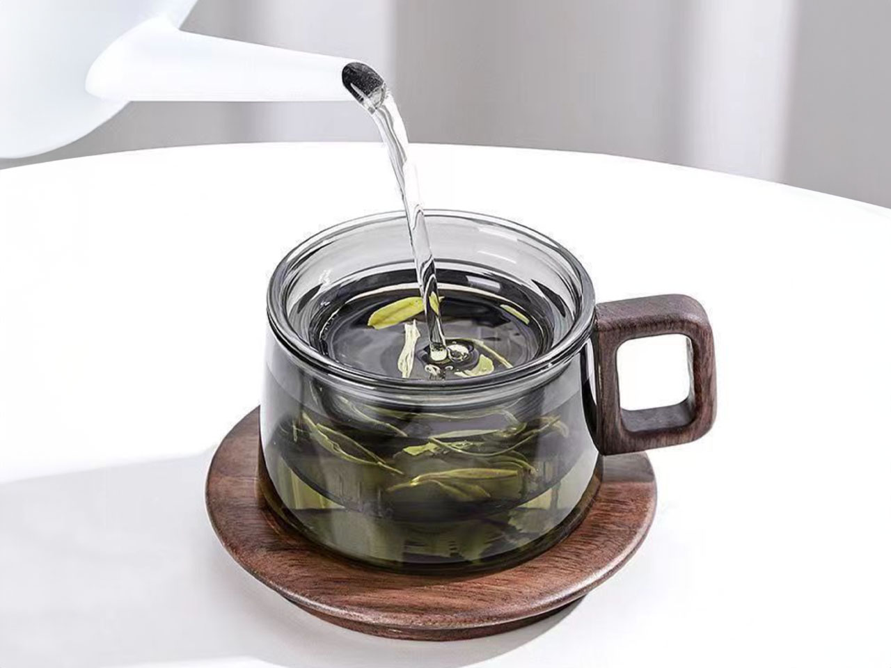 Szklany czajniczek z zaparzaczem. Doskonały na przyrządzenie herbatki na chłodne wieczory.