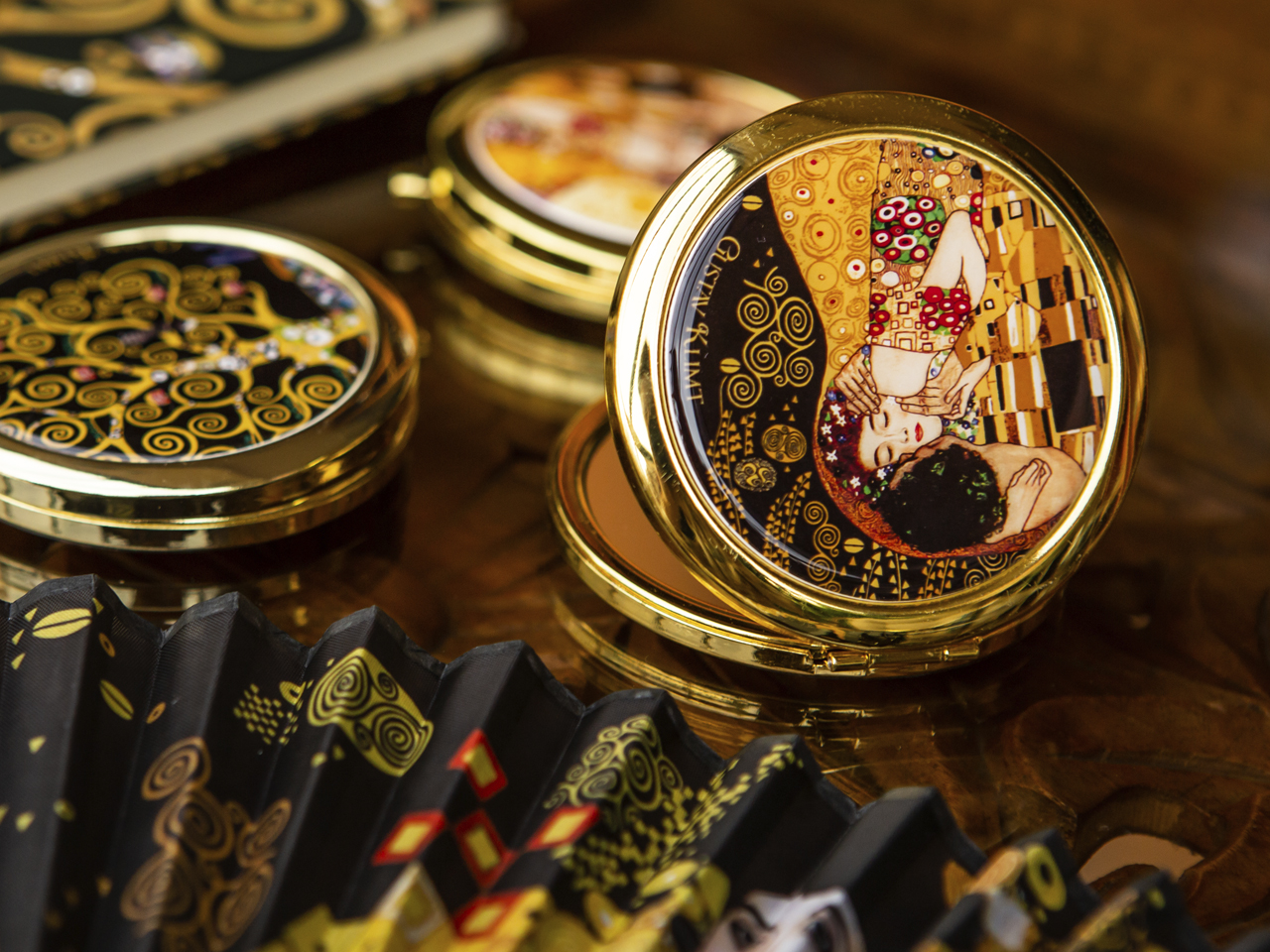 Urocze, małe lustereczko z motywem twórczości Gustava Klimta. Doskonałe do każdej kobiecej torebki. Zajmuje mało miejsca a jego piękne zdobienia dodają uroku.