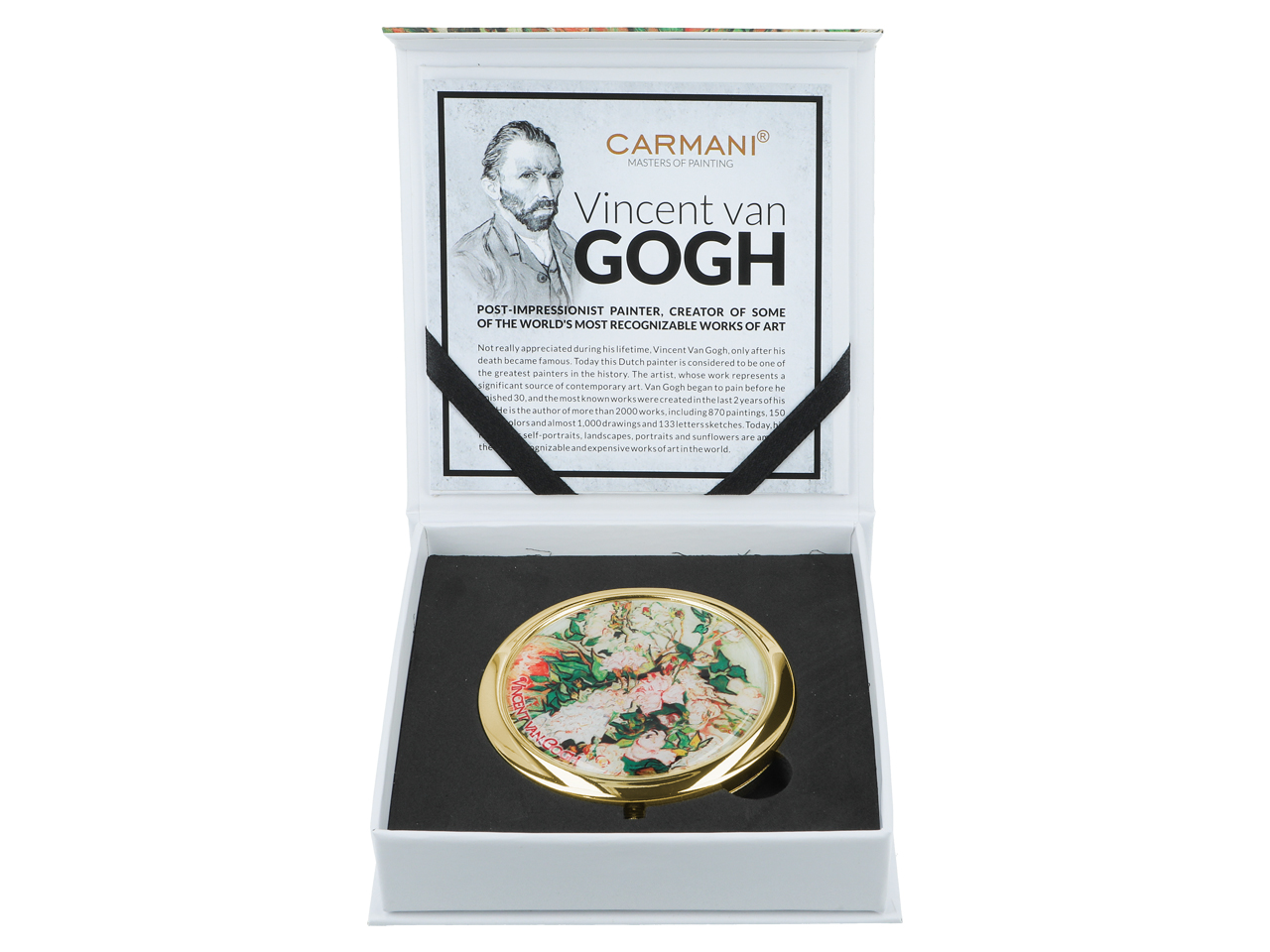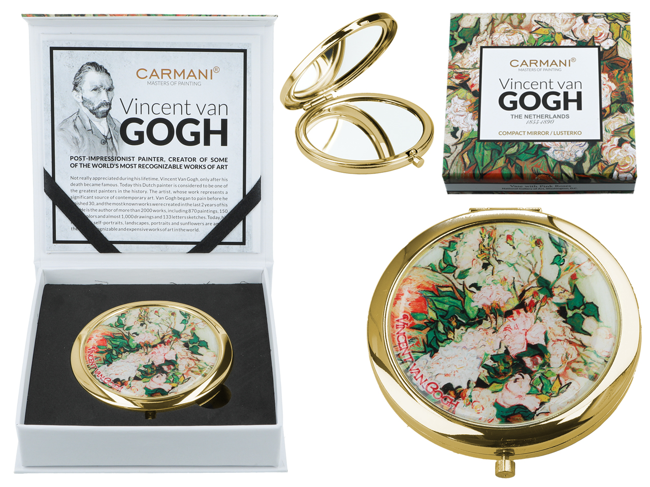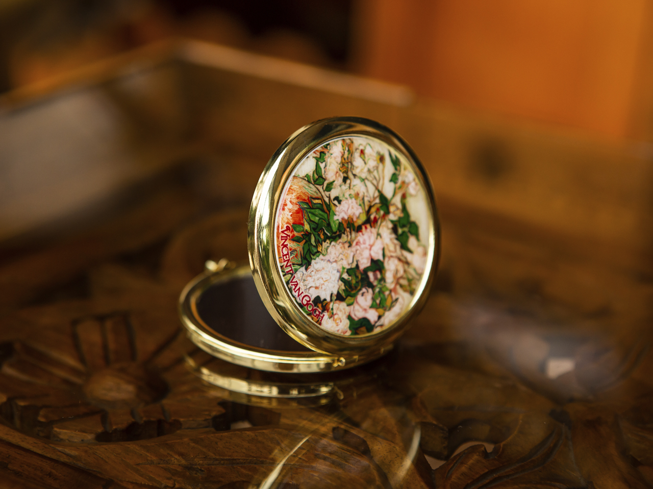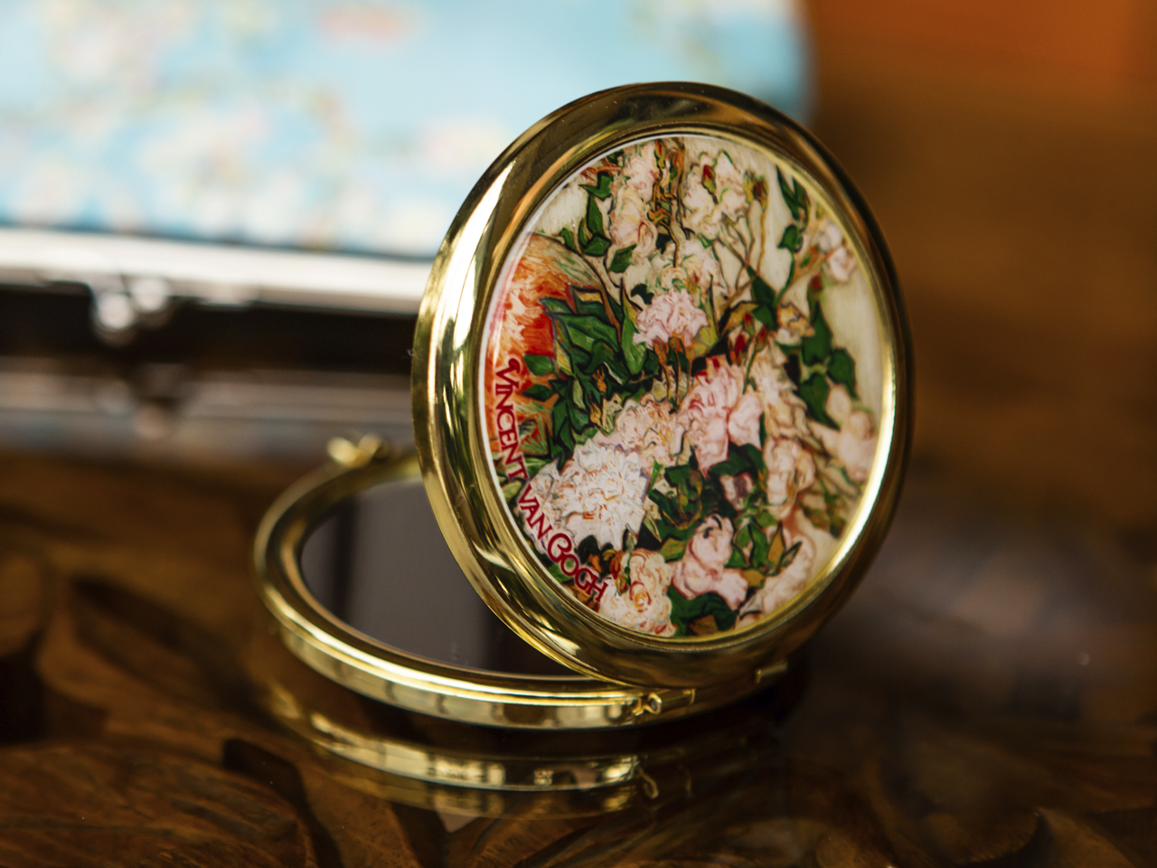 Urocze, małe lustereczko z motywem twórczości Vincenta van Gogha. Doskonałe do każdej kobiecej torebki. Zajmuje mało miejsca a jego piękne zdobienia dodają uroku.