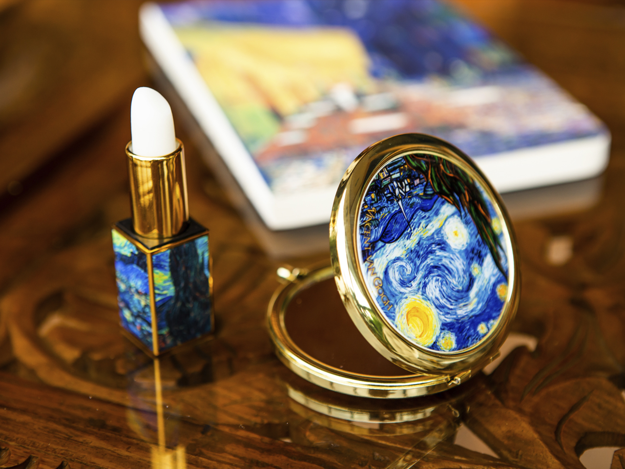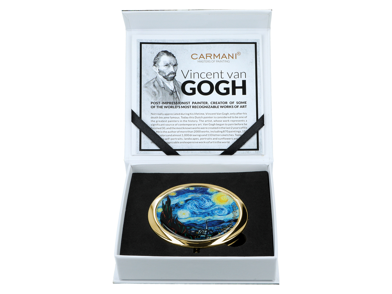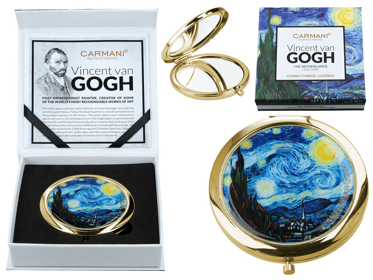 Urocze, małe lustereczko z motywem twórczości Vincenta van Gogha. Doskonałe do każdej kobiecej torebki. Zajmuje mało miejsca a jego piękne zdobienia dodają uroku.