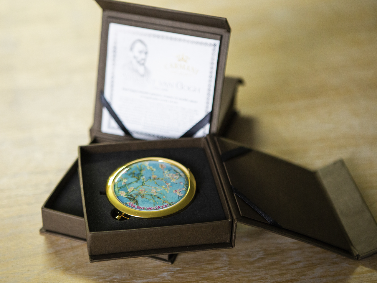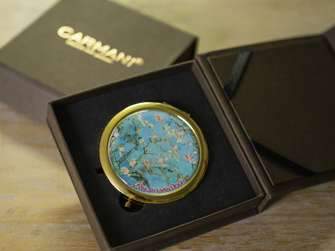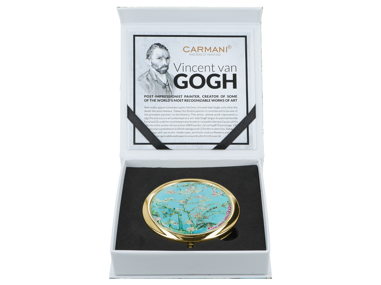 Urocze, małe lustereczko z motywem twórczości Vincenta van Gogha. Doskonałe do każdej kobiecej torebki. Zajmuje mało miejsca a jego piękne zdobienia dodają uroku.