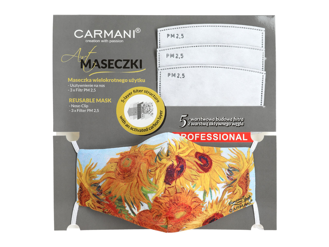 Maseczka ochronna z filtrem – V. van Gogh, Słoneczniki (CARMANI)