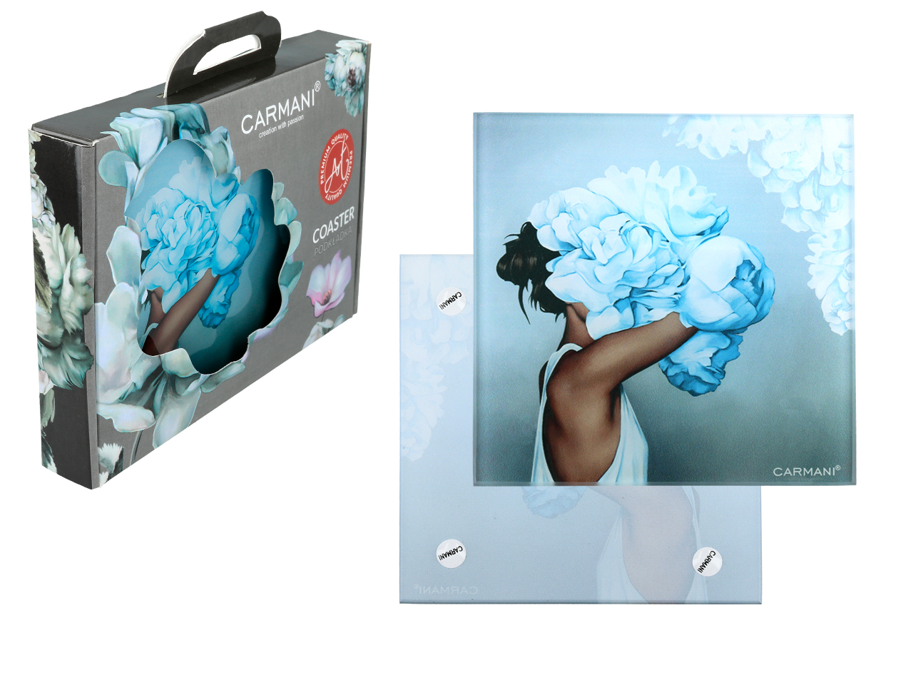 Podkładka szklana – L. Lozano, Kwiaty na głowie, błękit (CARMANI)