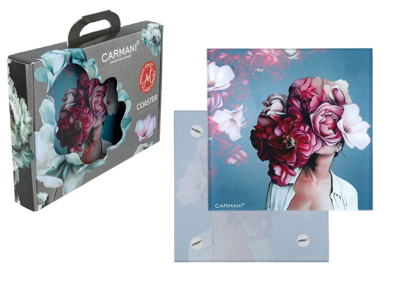 Podkładka szklana – L. Lozano, Kwiaty na głowie, różowe (CARMANI)