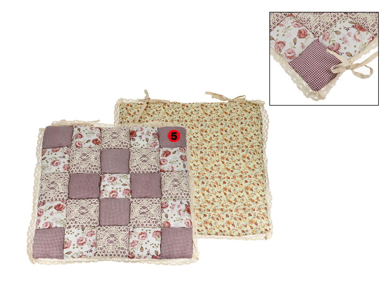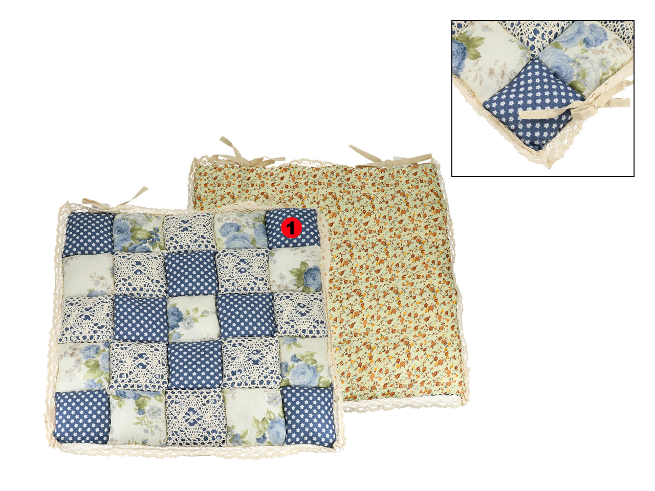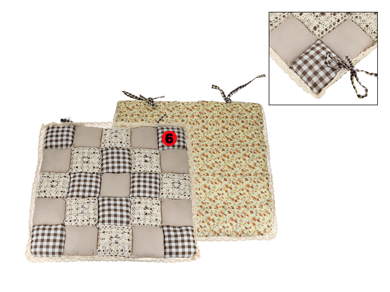 Poduszka na krzesełko – motyw kwadracików z koronką