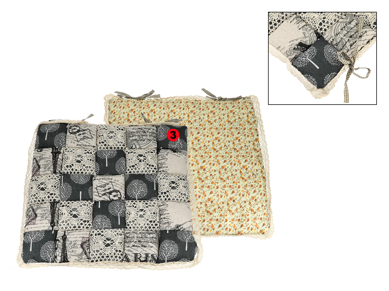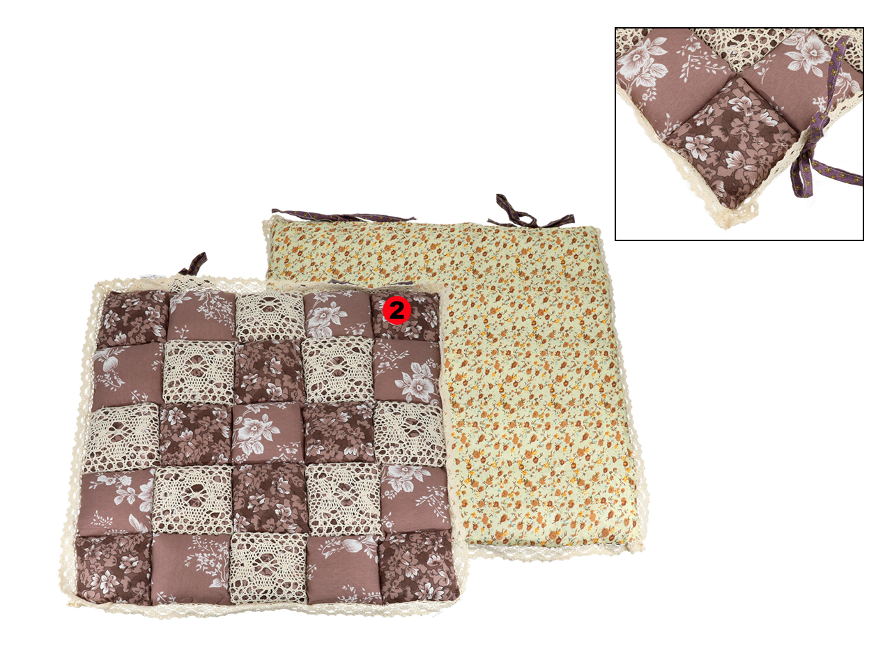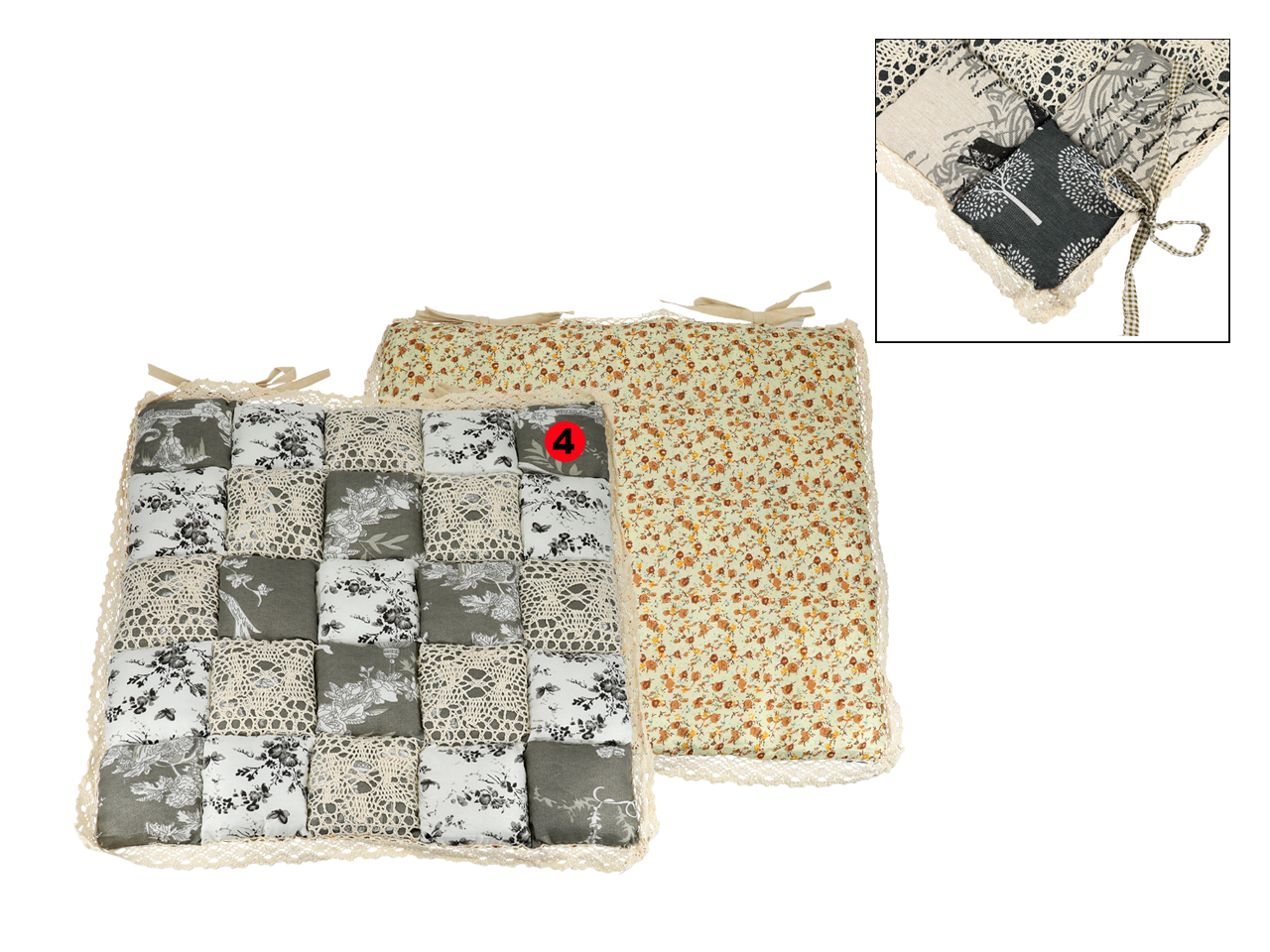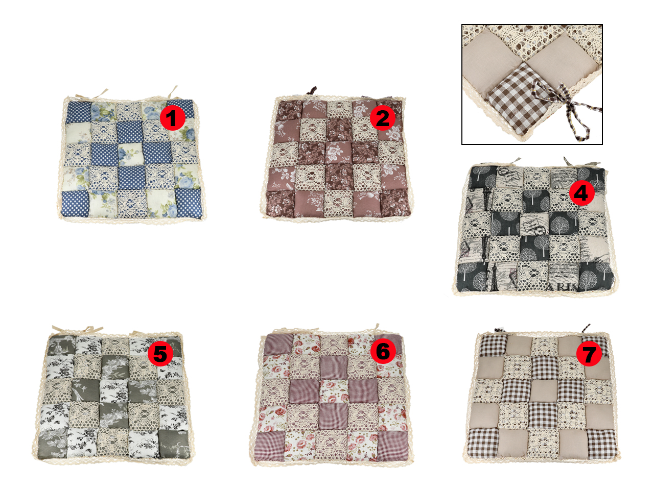 Poduszka na krzesełko – motyw kwadracików z koronką