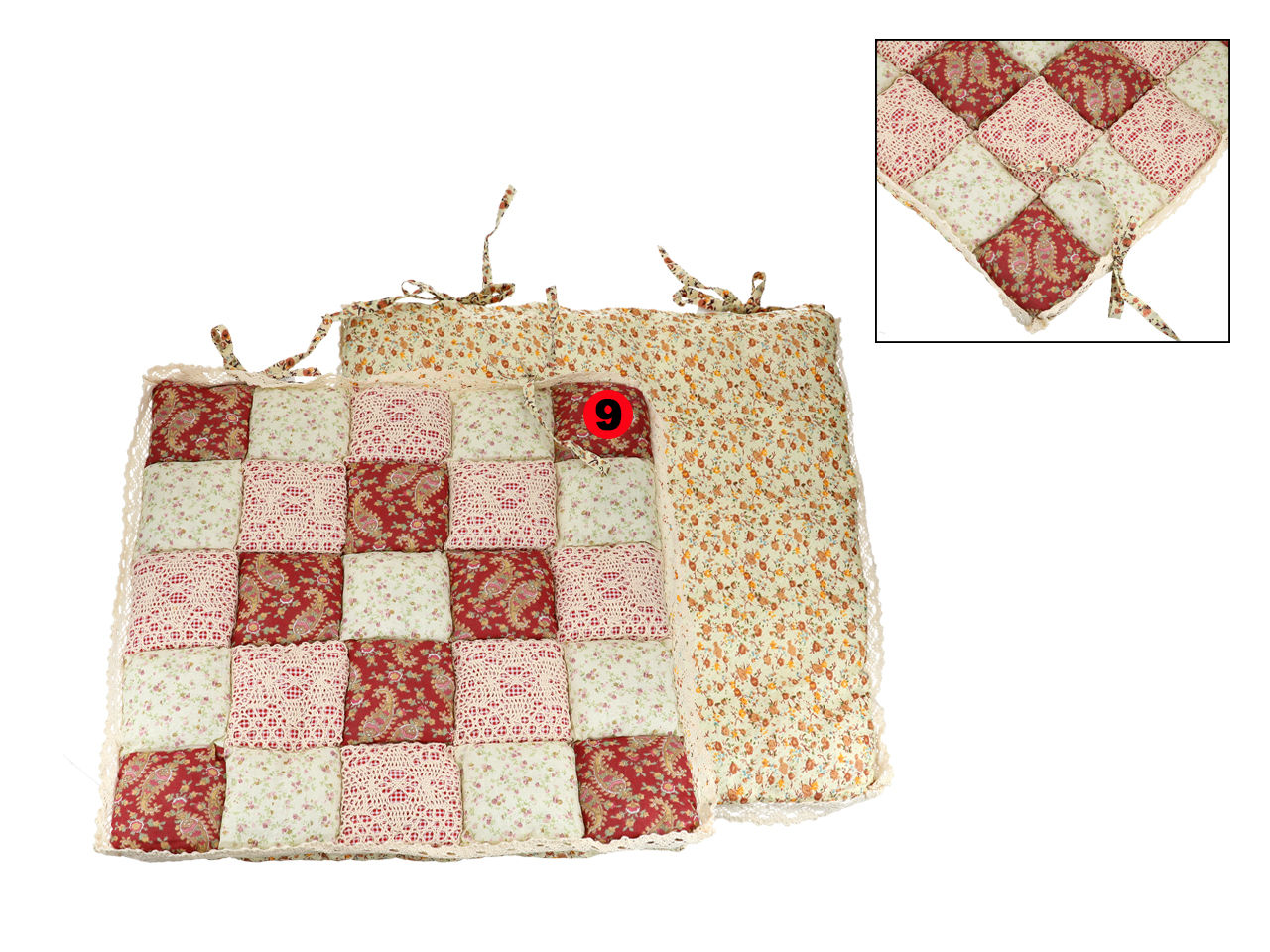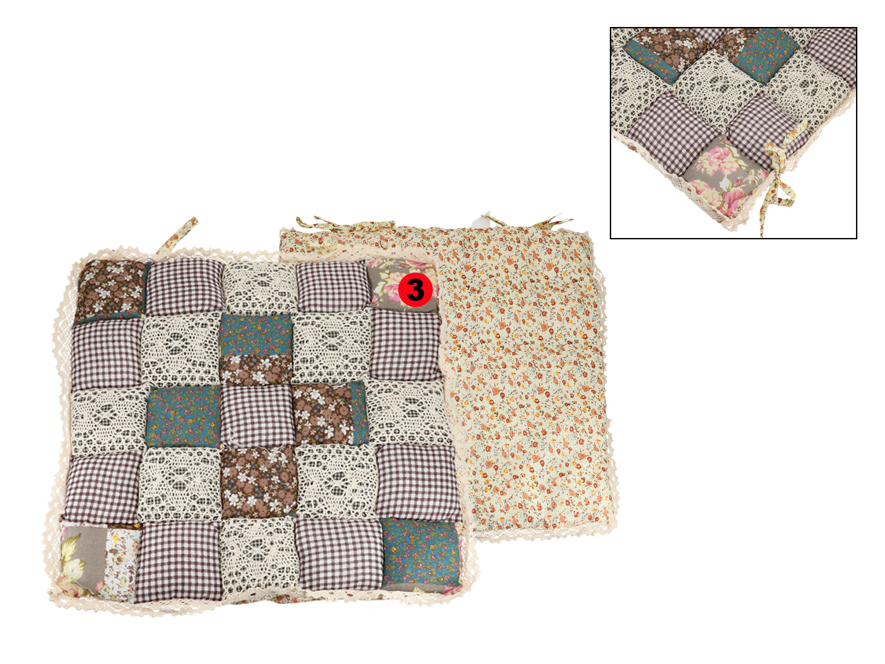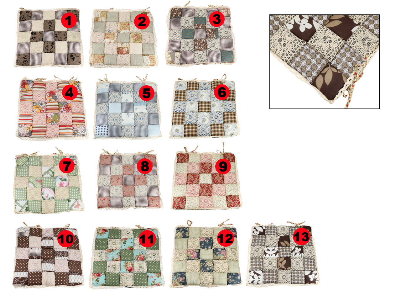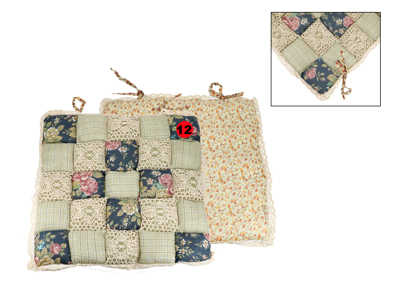 Poduszka na krzesełko – motyw kwadracików z koronką