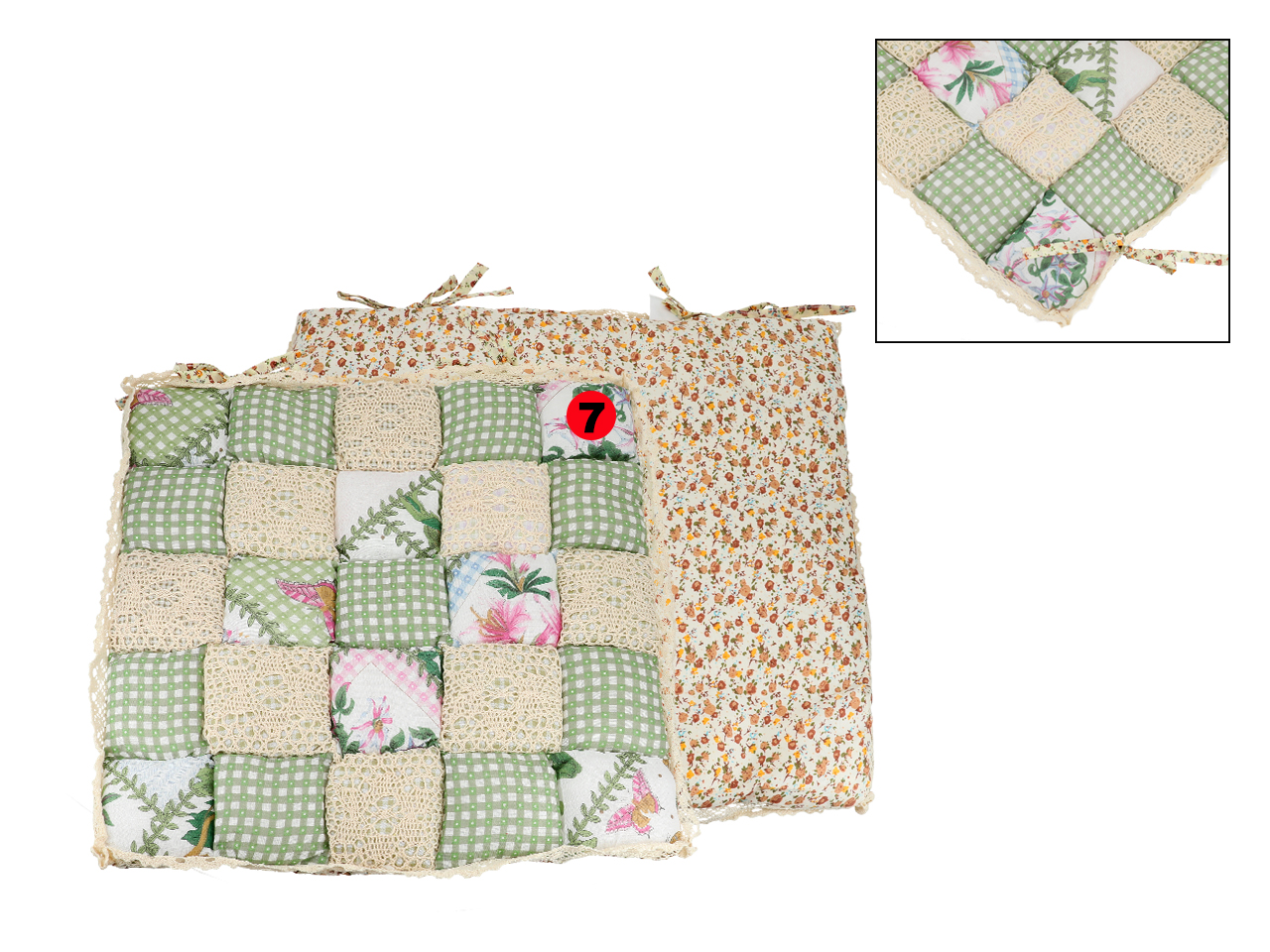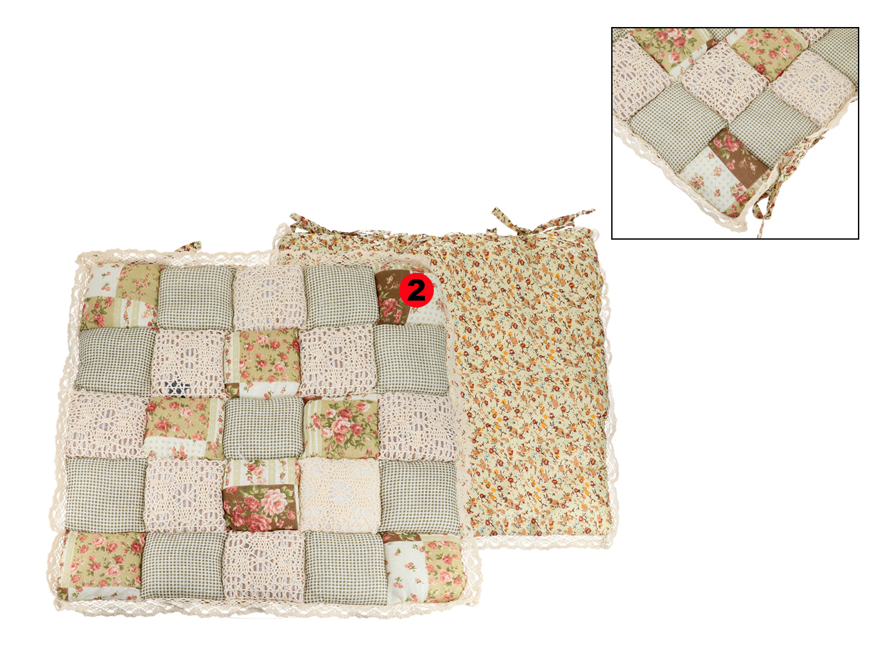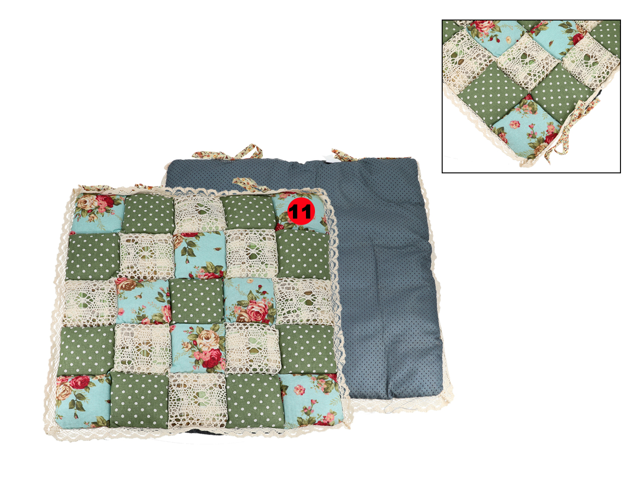 Poduszka na krzesełko – motyw kwadracików z koronką