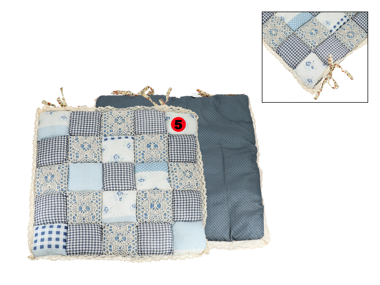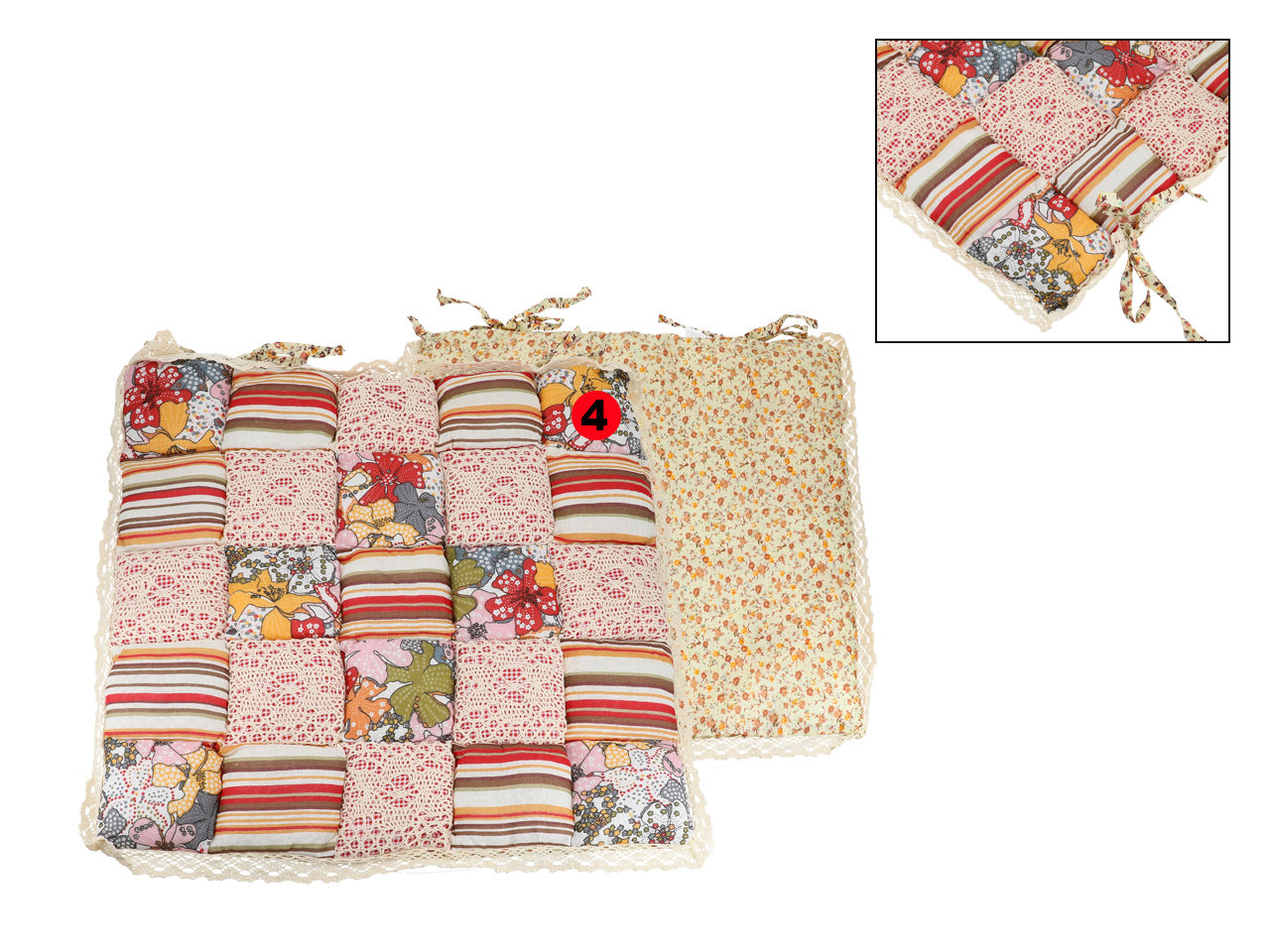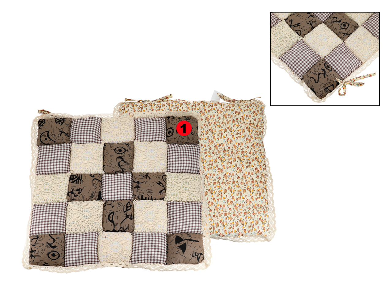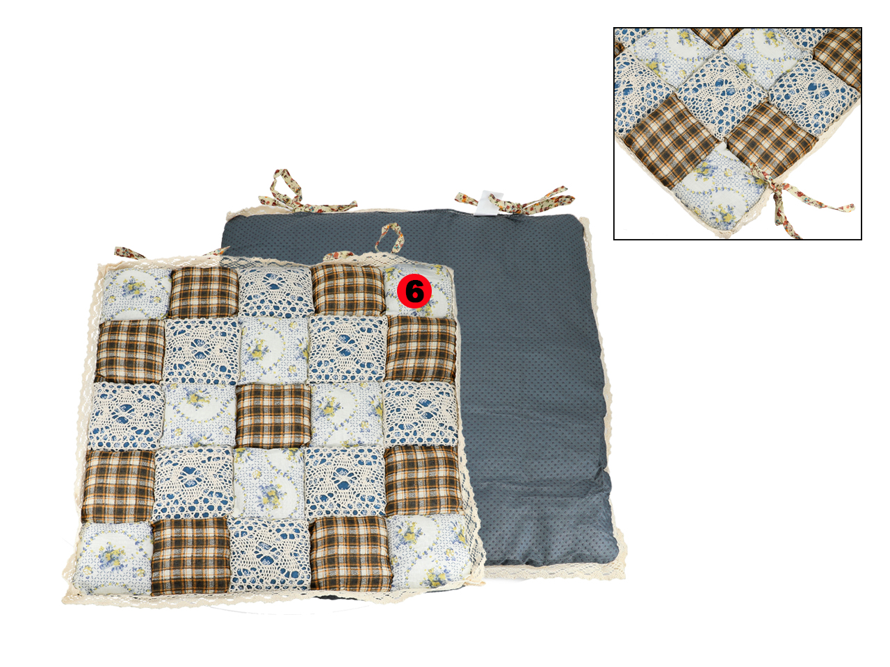 Poduszka na krzesełko – motyw kwadracików z koronką