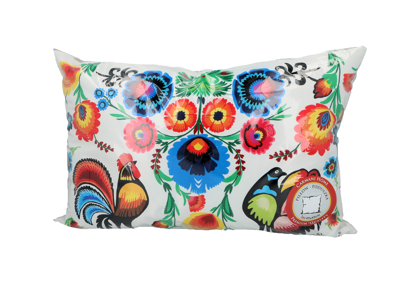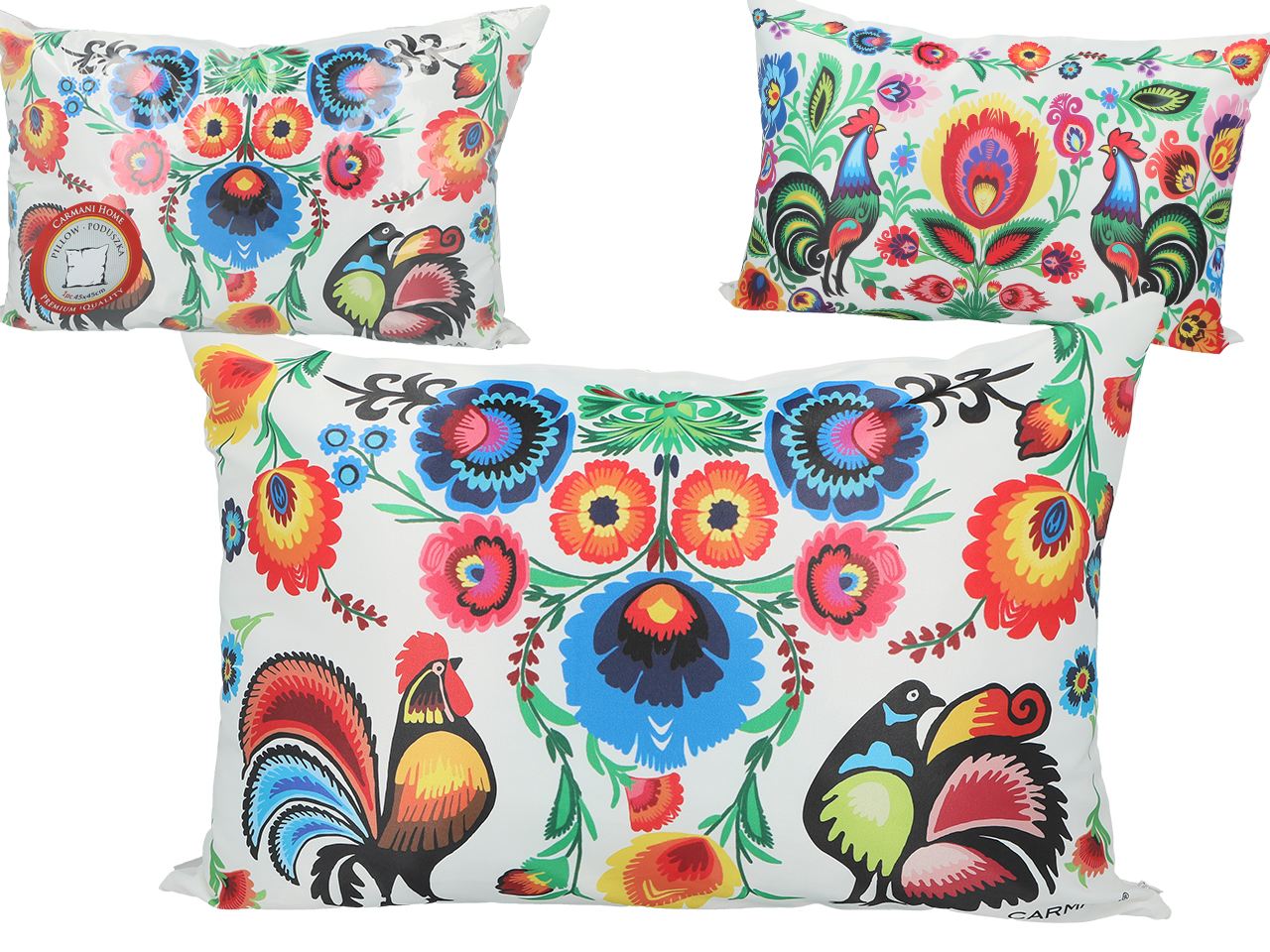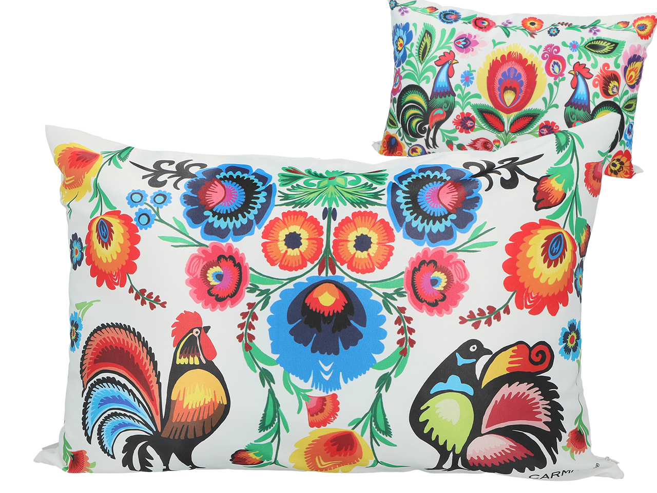 Poduszka z wypełnieniem/suwak (duża) – Wzór kujawski, koguty (białe tło) (CARMANI)