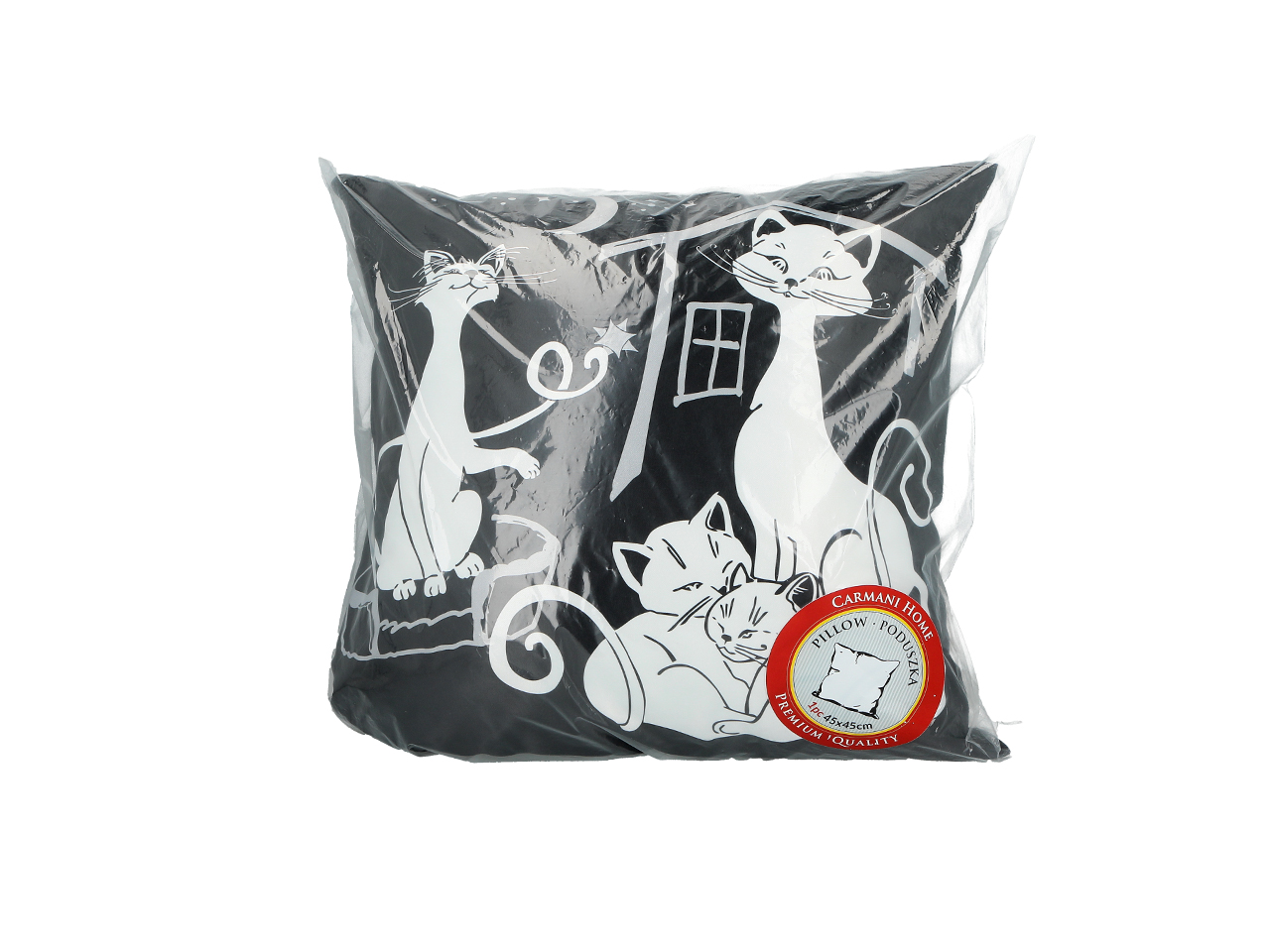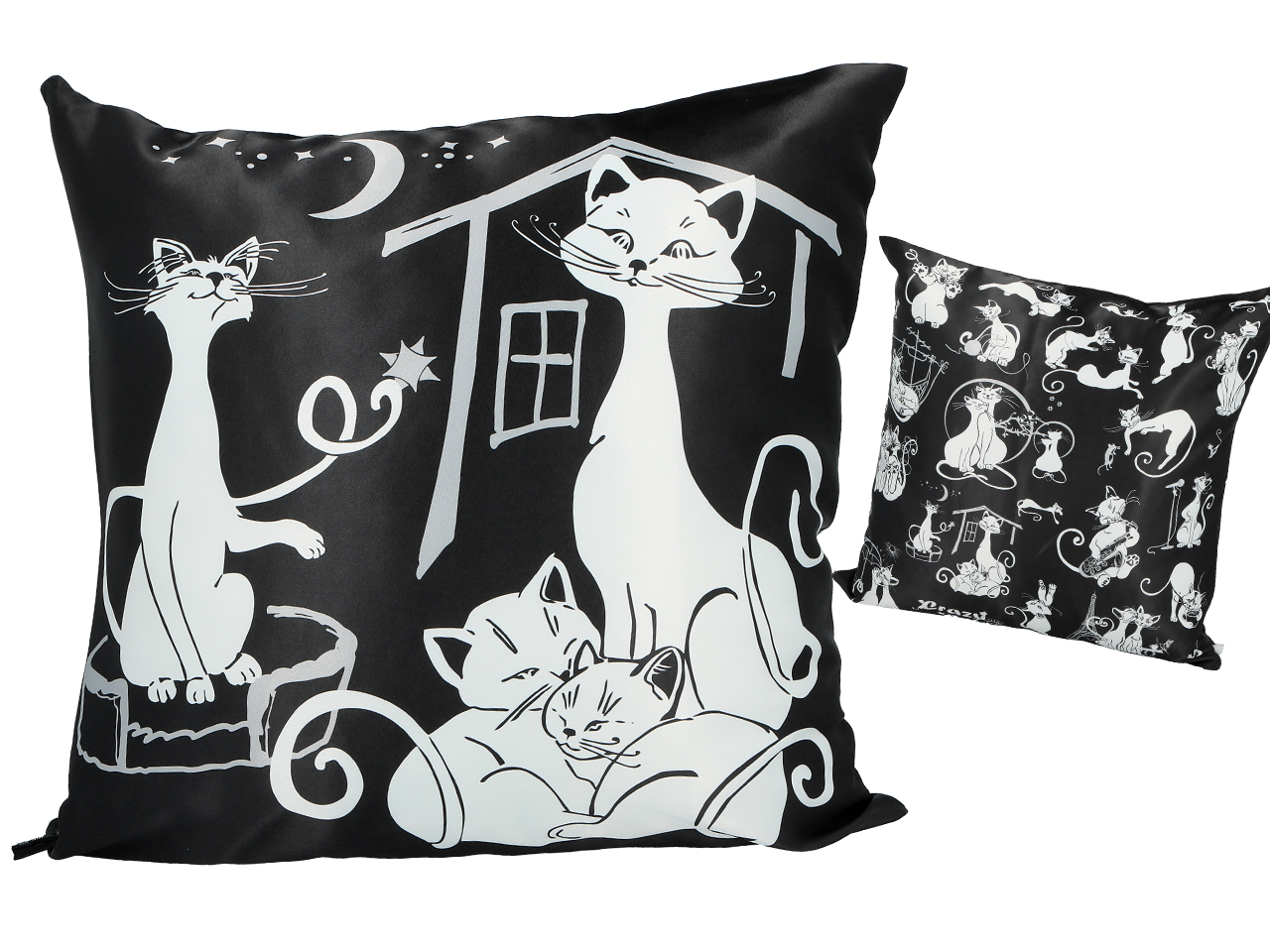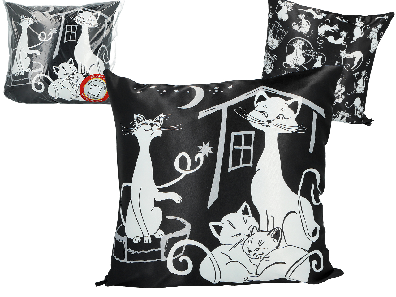 Poduszka z wypełnieniem/suwak – Koci świat, Kocia rodzina (czarne tło) (CARMANI)