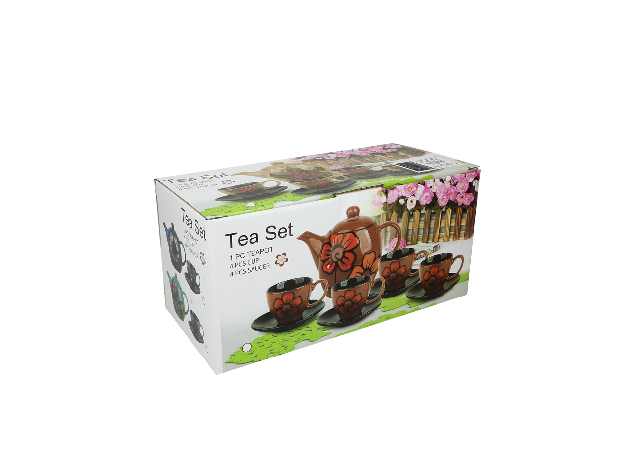 Serwis – czajnik i 4 filiżanki ze spodkami (kolor do wyboru)