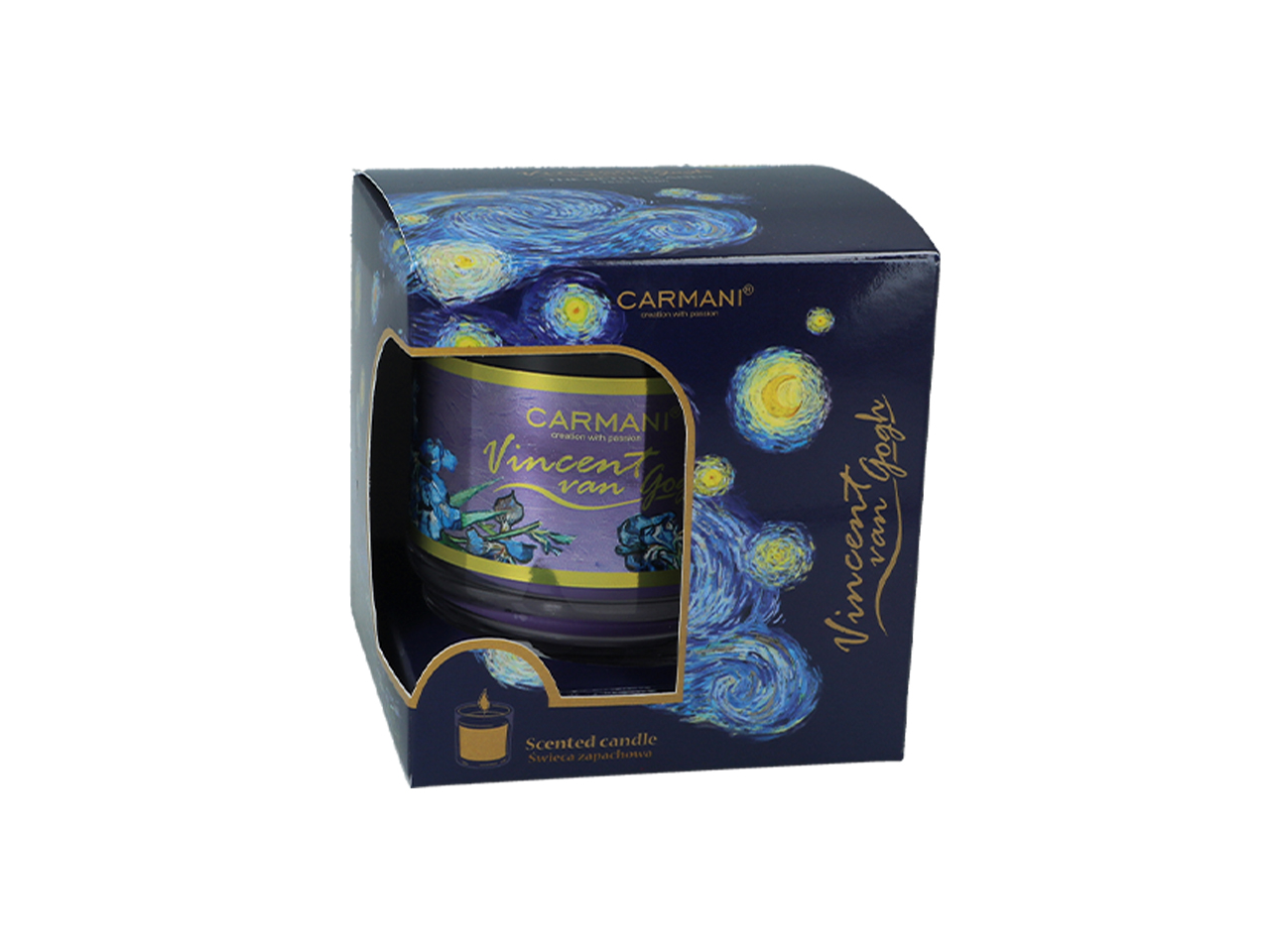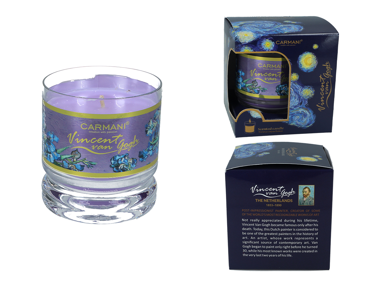Świeczka w szkle – V. van Gogh, Irysy, Lawenda (CARMANI)