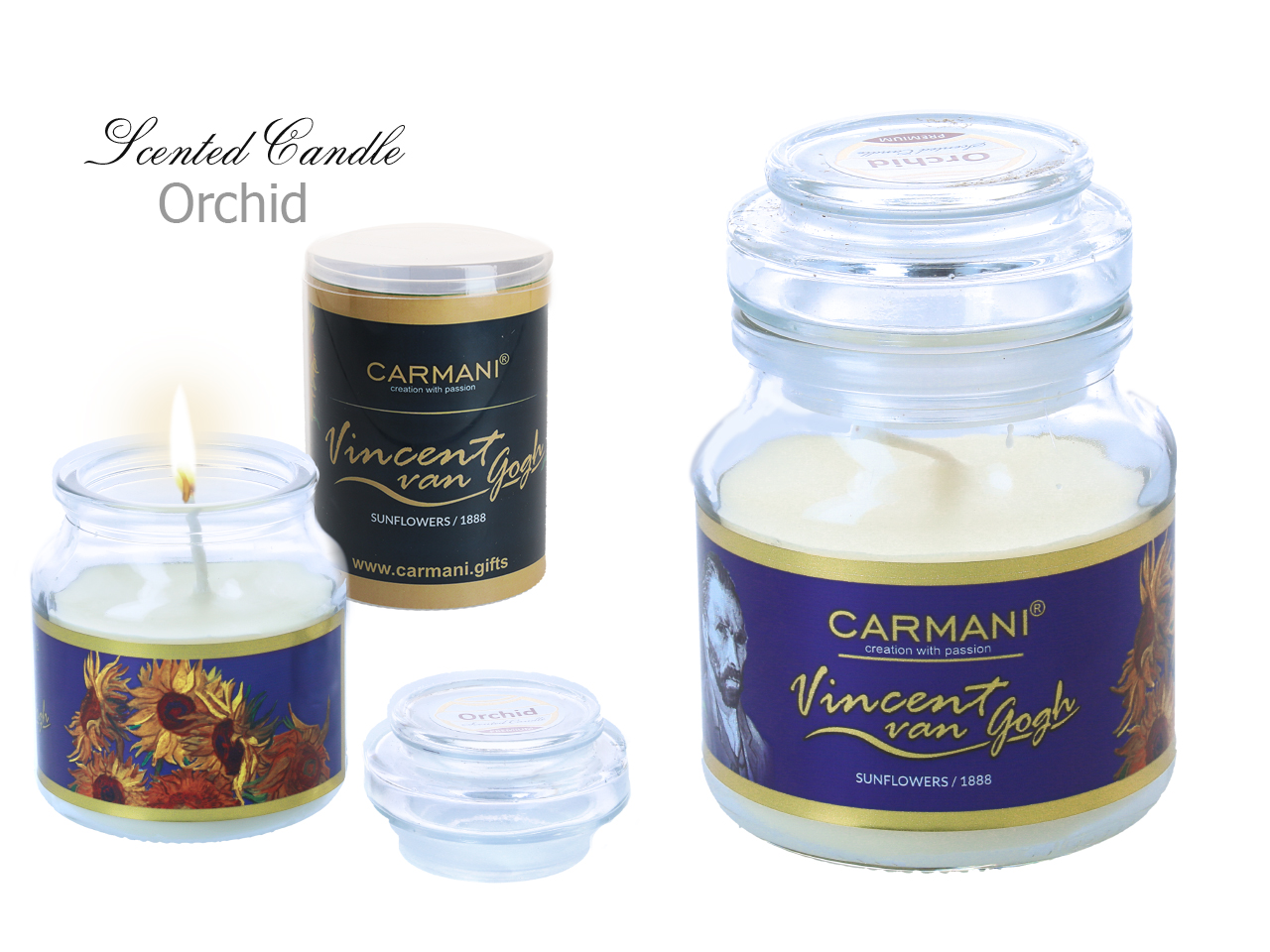 Świeczka zapachowa, american mały – V. van Gogh, Słoneczniki – Orchid (CARMANI)