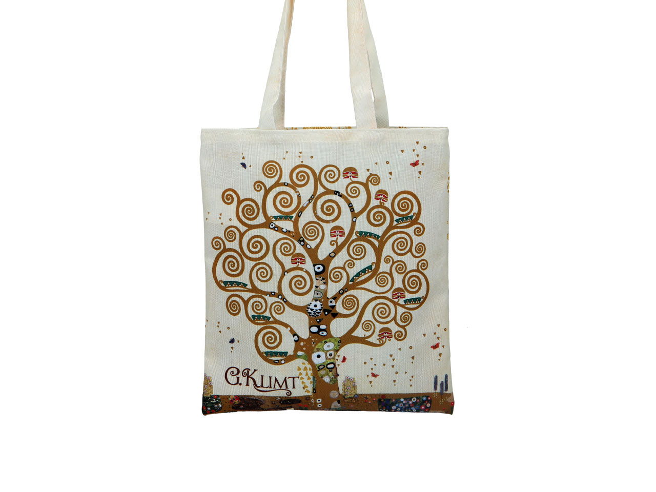 Torba śniadaniowa – G. Klimt, Pocałunek i Drzewo życia (kremowe tło) (CARMANI)