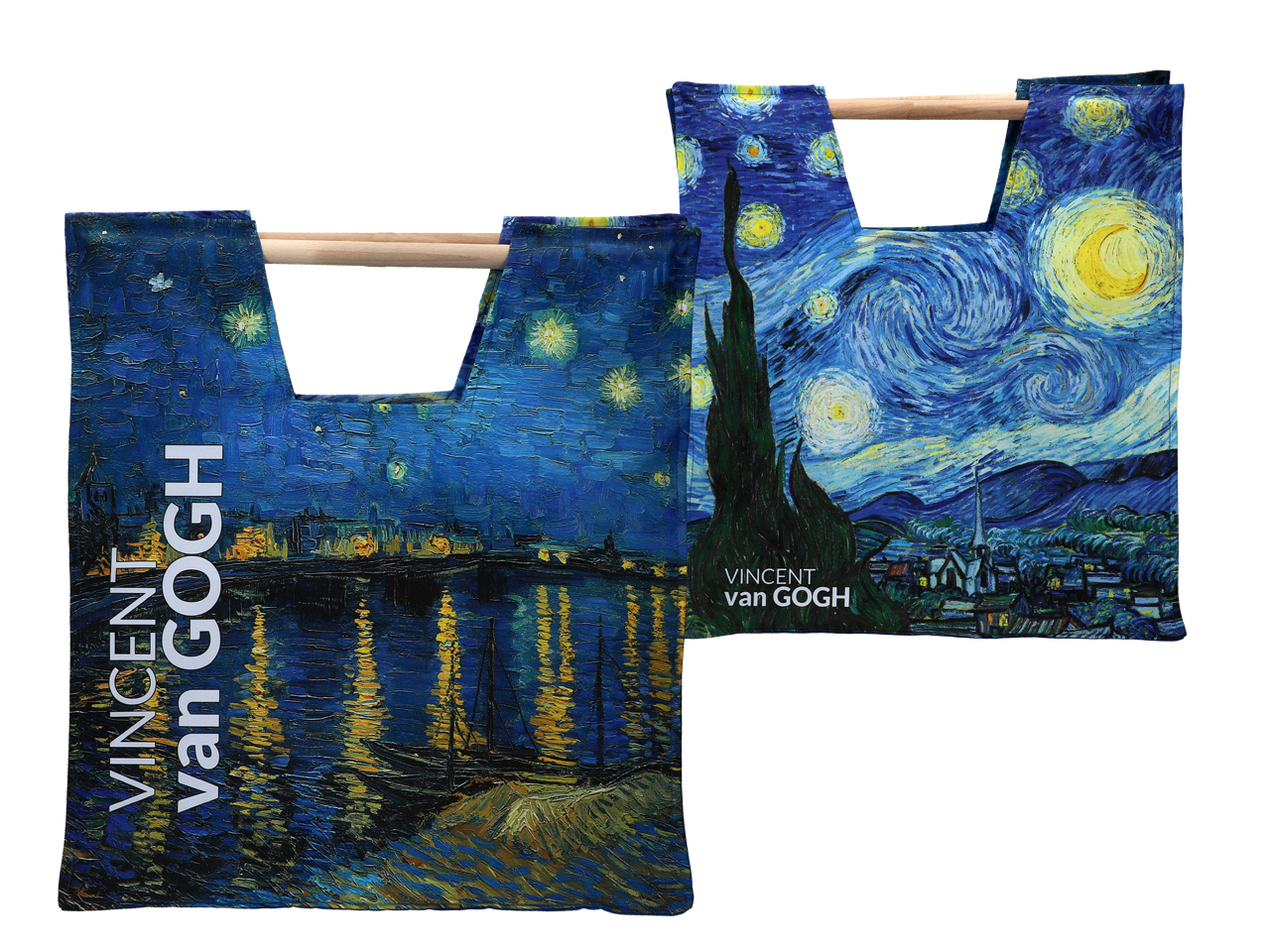 Torba z drewnianym uchwytem – V. van Gogh, Gwiaździsta noc nad Rodanem (CARMANI)