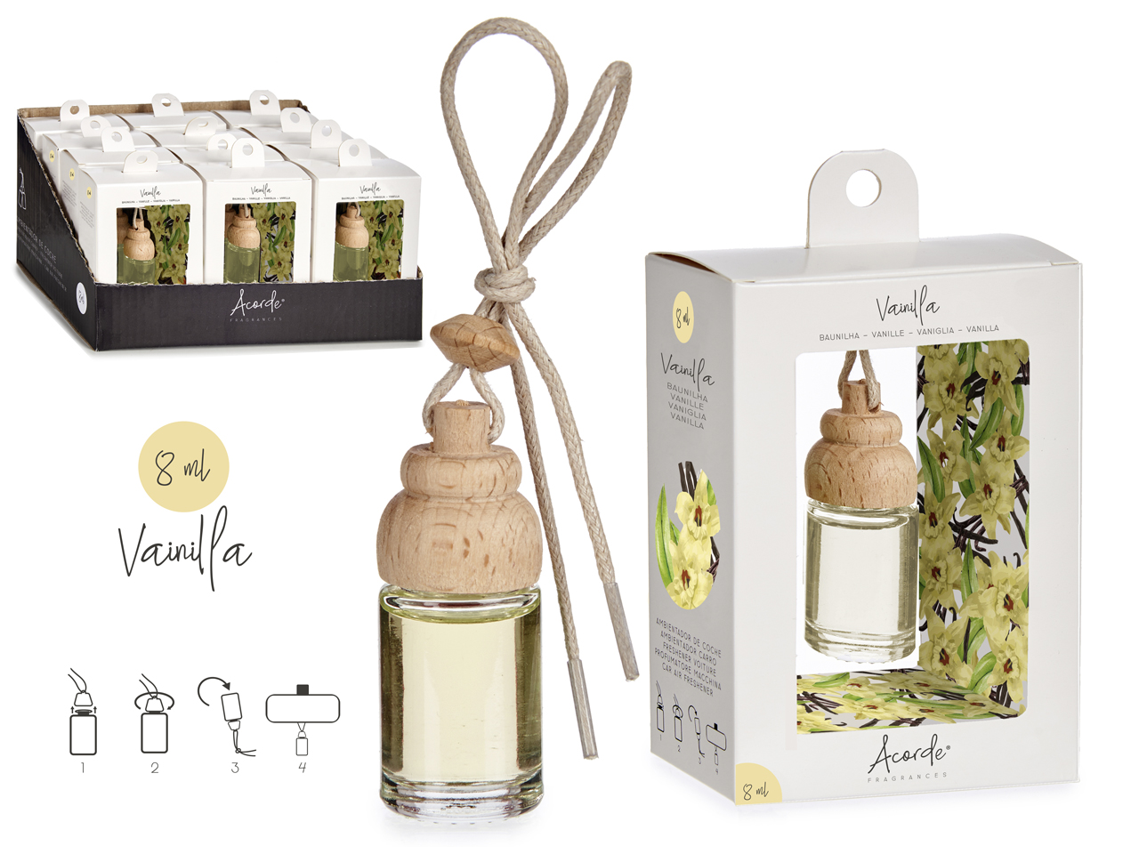 Zapach samochodowy w formie szklanego flakonika z olejkiem. Delikatny zapach uprzyjemnia nam podróż. Dostępny w kilku zapachach, każdy znajdzie coś dla siebie.