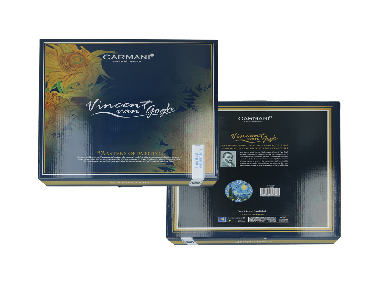 Zwykły zegar? Nie tym razem. To fragment nieba namalowanego pędzlem szaleństwa i geniuszu. Szklany talerz dekoracyjny z reprodukcją dzieła Vincenta van Gogha przenosi Cię do świata, w którym gwiazdy wirują, a kolory oddychają.